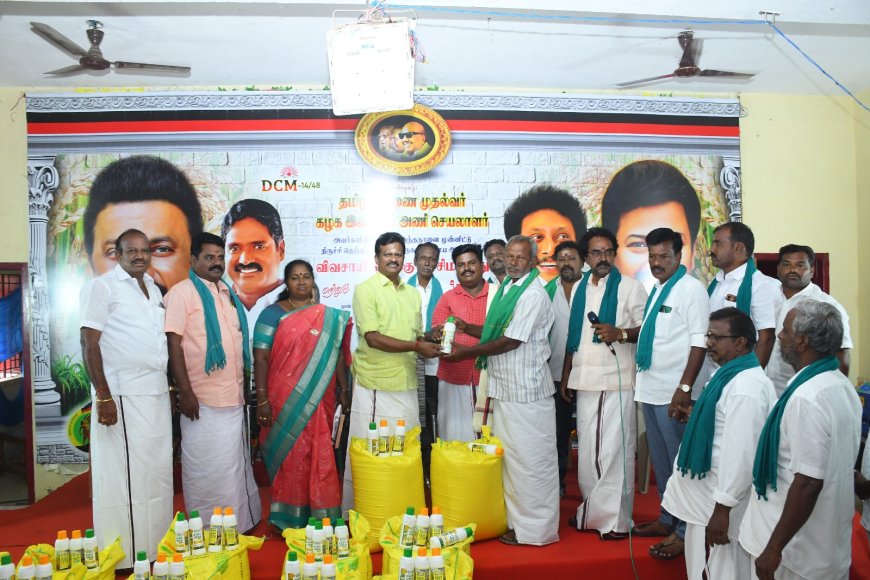 *DCM - 48 என்ற தலைப்பில் தமிழக துணை முதல்வர் உதயநிதி ஸ்டாலின் 48வது பிறந்த நாளை முன்னிட்டு மாநகர விவசாய அணி சார்பில் விவசாயிகளுக்கு பூச்சி மருந்து மற்றும் உரம் வழங்கும் நிகழ்ச்சி திருச்சி கல்லுக்குழியில் நடைபெற்றது