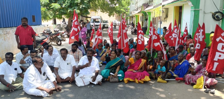 திருச்சி திருவளர்ச்சோலை பகுதியில் அடிப்படை வசதிகள் செய்து தர கோரி இந்திய கம்யூனிஸ்ட் கட்சி சார்பில் ஸ்ரீரங்கம் மாநகராட்சி அலுவலக வளாகத்தில் காத்திருப்பு போராட்டம்