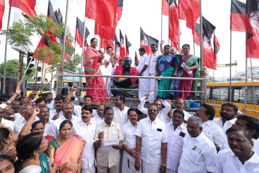 பேரறிஞர் அண்ணா பிறந்தநாளை முன்னிட்டு திருச்சி தெற்கு மாவட்ட கழக செயலாளர் - அமைச்சர் அன்பில் மகேஸ் பொய்யாமொழி தலைமையில் மாலை அணிவித்து மரியாதை