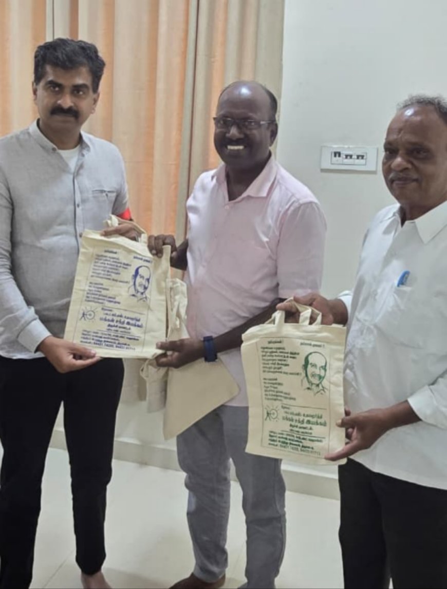 மக்கள் சக்தி இயக்கத்தின் மாநில பொருளாளரும், தண்ணீர் அமைப்பு செயல் தலைவருமான கே.சி. நீலமேகம் இன்று (22.09.25) திருச்சி மக்களவை உறுப்பினர் துரை வைகோ அவர்களை திருச்சி அலுவலகத்தில் சந்தித்தார். இந்த சந்திப்பில், “பிளாஸ்டிக் தவிர்ப்போம் – துணிப்பையை எடுப்போம்” என்ற விழிப்புணர்வை பொதுமக்களிடம் வலுப்படுத்த தேவையான நடவடிக்கைகளை எடுக்க வேண்டும் என கோரிக்கை வைக்கப்பட்டது.,