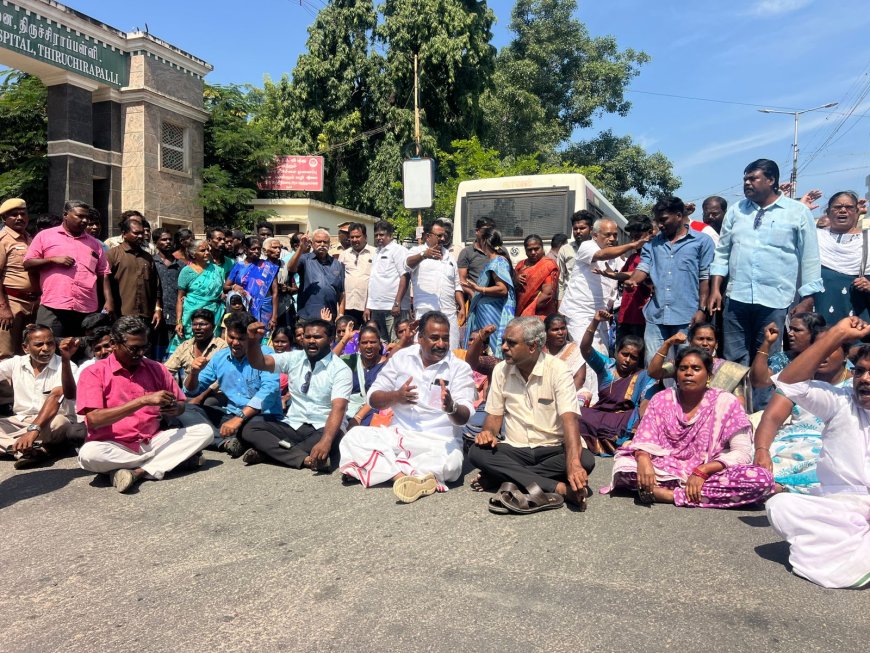 திருச்சியில் இளம்பெண் எரித்து கொலை உடலை வாங்க மறுத்து உறவினர்கள் மற்றும் கட்சியினர் திருச்சி அரசு மருத்துவமனை முன்பு சாலை மறியல் போராட்டத்தில் ஈடுபட்டு வருவதால் பரபரப்பு